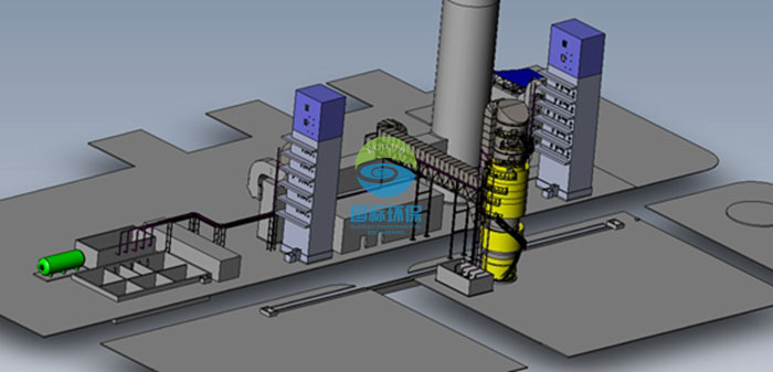 本項(xiàng)目脫硫?qū)崿F(xiàn)超清潔排放。我公司利用其廠區(qū)已有印染廠廢水堿性特點(diǎn),提出了單塔雙回旋增效脫硫工藝,在一座脫硫塔內(nèi)實(shí)現(xiàn)高PH、低PH脫硫液的雙噴淋,在實(shí)現(xiàn)煙氣充分脫硫的的同時(shí),廢水以較低PH值回流污水廠。