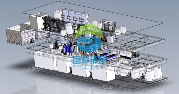 此項目包括含鉻廢水、含氰廢水、含氟廢水、含油廢水、熒光廢水、地面廢水、酸堿綜合廢水等多類廢水。設(shè)計處理總水量90m3/h,污水處理采用“化學(xué)與處理+混凝沉淀+過濾”工藝;純水制備采用“過濾+一級反滲透+EDI”工藝。處理后達(dá)到《電鍍污染物綜合排放標(biāo)準(zhǔn)》GB21900-2008表2標(biāo)準(zhǔn),污水回用率≮65%,回用水質(zhì)達(dá)到航標(biāo)C類水標(biāo)準(zhǔn)。