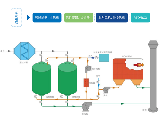 廢氣中的有機(jī)成分被吸附到活性炭的微孔中,形成一層平衡的吸附濃度。由于分子之間有相互的引力,當(dāng)一個(gè)分子被捕捉后,會(huì)導(dǎo)致更多分子被吸引,直到填滿活性炭纖維孔隙為止。在吸附飽和后,采用高溫蒸汽脫附法,將吸附在活性炭孔徑內(nèi)的有機(jī)分子脫附出來(lái)并回收。