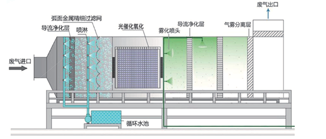 利用高能UV紫外線光束分解空氣中的氧分子產(chǎn)生臭氧。UV+O2→O-+O+; O+O2→>03。臭氧使工業(yè)廢氣物質(zhì)降解轉(zhuǎn)化成低分子化合物、水和二氧化碳。