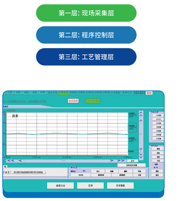 采用現(xiàn)場(chǎng)控制總線技術(shù),整個(gè)生產(chǎn)區(qū)由計(jì)算機(jī)構(gòu)成集散控制系統(tǒng)。系統(tǒng)分為三層:第一層為現(xiàn)場(chǎng)采集層,第二層程序控制層,第三層為工藝管理層。該控制系統(tǒng)預(yù)留ERP接口,可對(duì)接工廠的企業(yè)資源計(jì)劃(ERP)系統(tǒng),生產(chǎn)過程可監(jiān)控性及主要工藝參數(shù)及時(shí)存檔(海量型數(shù)據(jù)庫,為將來全面實(shí)現(xiàn)智能化生產(chǎn)奠定好相關(guān)基礎(chǔ)),實(shí)現(xiàn)產(chǎn)品質(zhì)量可追溯性。